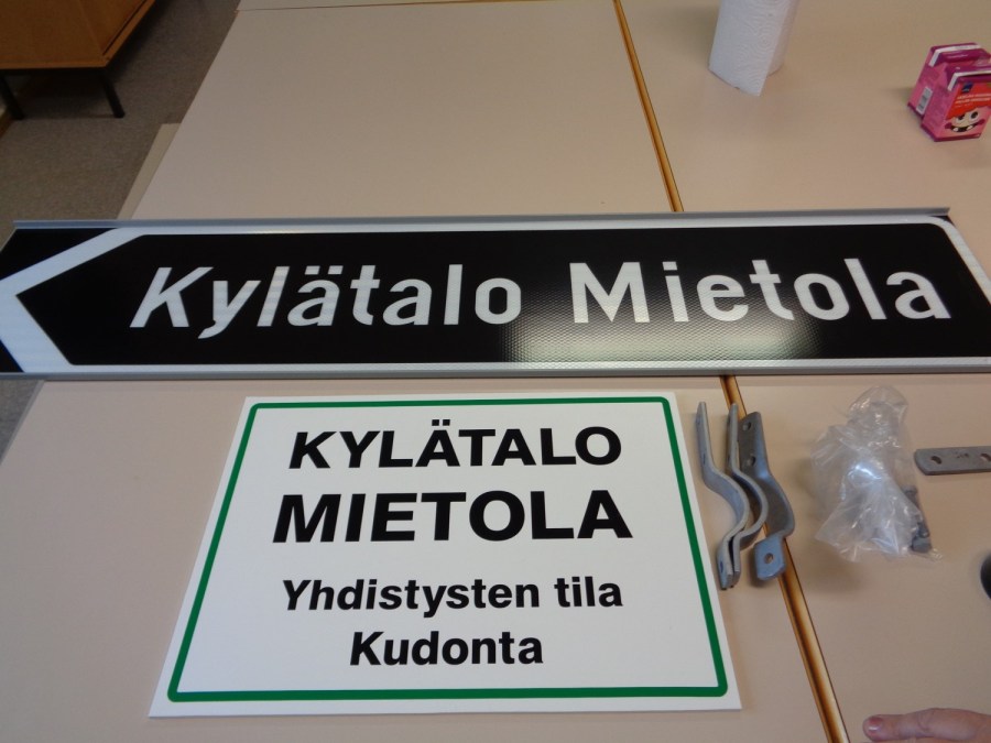 - Kylätalon kyltit ovat nyt valmiita ja ne asennetaan sään salliessa paikoilleen.
