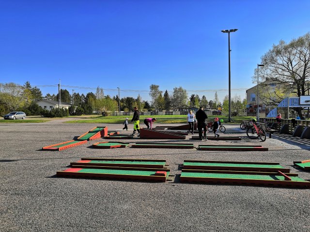 Myös minigolf-rata on käytettävissä Ulkopeliareenan vieressä. Lasten mailoja lainattavissa itsepalvelukirjastosta ja aikuisten mailoja Tavastilan kuntosalilta tai Helwin Virvokkeesta.