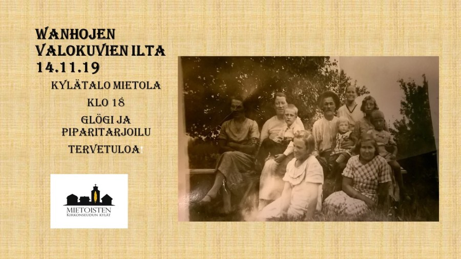 Voit tuoda omia kuviasi. Tapahtumassa myös diaesitys vanhoista paikkakuntalaisista kuvista. Jos haluat esittää omia kuviasi tietokoneelta, ota etukäteen yhteyttä p. 0414625622 tai jalkanen.anna@outlook.com.